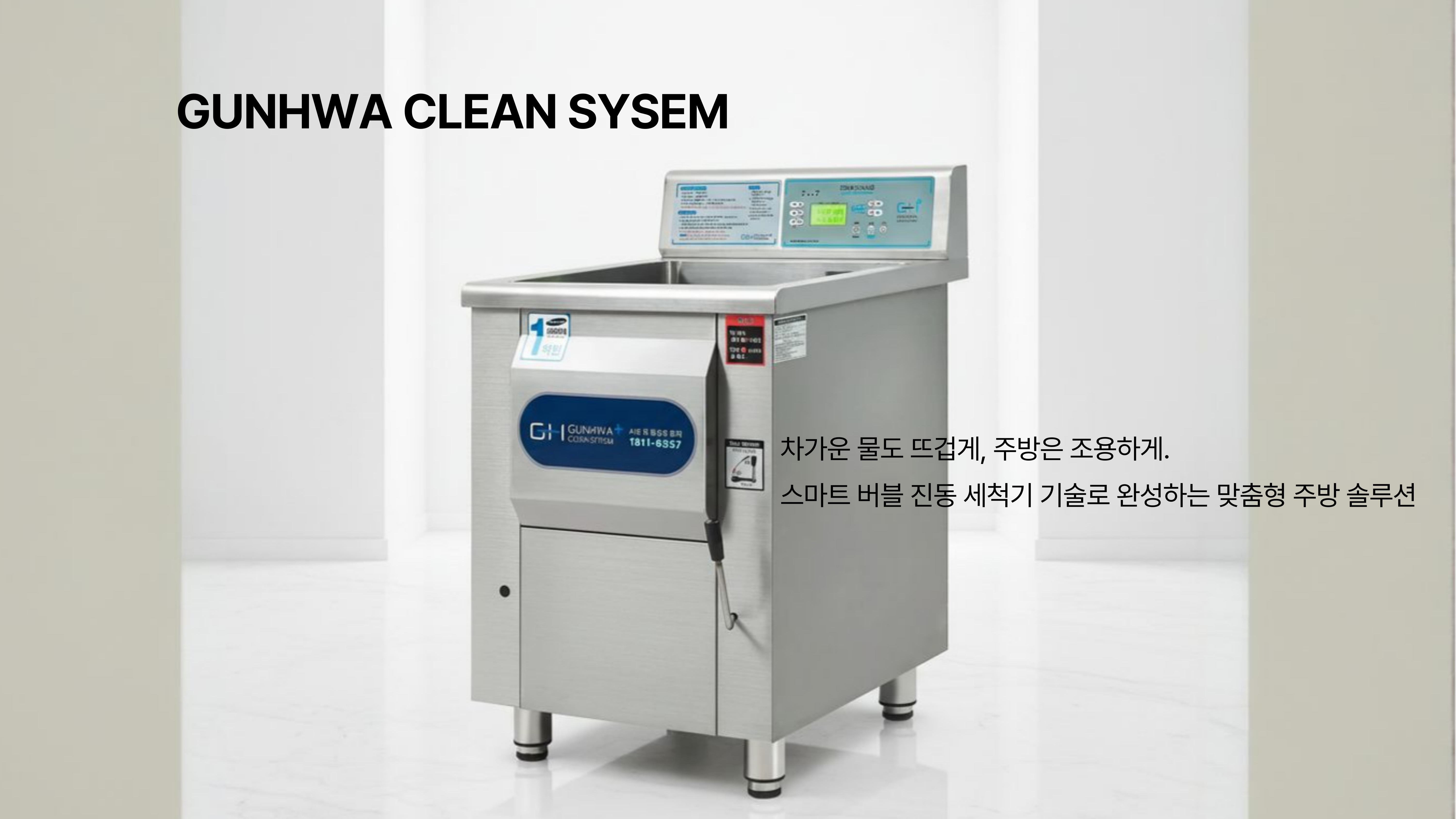 (주)건화클린시스템 스마트 진동 세척기는 자동 살균 세척으로 인건비 및 고정비용 절감 효과를 볼수있는 현존하는 가장 확실한 자동 설거지 제품이라 할 수 있습니다.